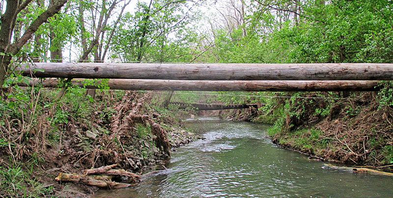 Included in this season’s news are details about the design and building of a new Cranberry Run footbridge. The previous footbridge, built by Gerald Coburn and Kevin Siefker at the turn of the century and re-engineered by David Seitz, survived floodwater currents longer than any other bridge. This spring, we discovered that the northern-most weight-bearing pole was rotten, Dave went into action with assistance from his daughter Aili. He documented the new bridge-building project via email to Board President Laura. It’s a fascinating read that we share in the printed newsletter. The beauty of the electronic page offers more space for photos, so we’re sharing the report here as well.