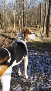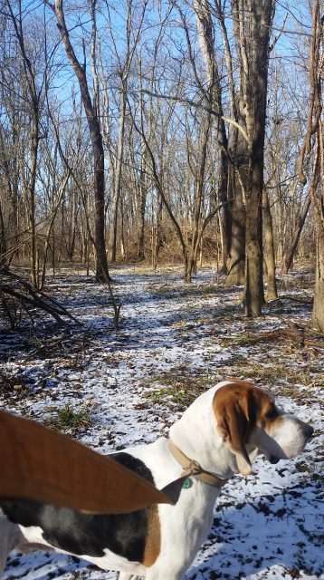 We skied the snowy hill down to Cranberry Run. Then there were three bridges to conquer. Fergus’ legs shook as he stepped over the slats, just like most people do. He paused halfway and watched the water flow below. But adventure in the form of a running fox squirrel were incentive enough cross to the opposite bank. Coburn’s Bottom Trail led us to David’s Turtle Pile of bush honeysuckle brush where a deer and a flock of turkeys flushed and melted back into the trees.
