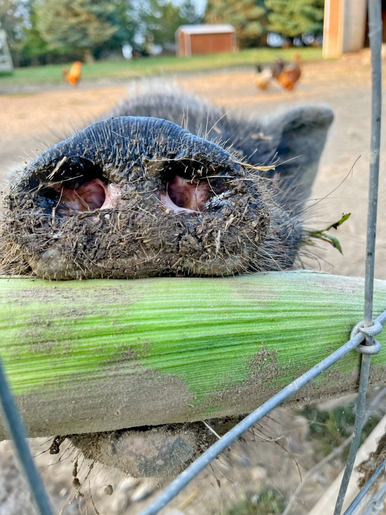 There isn’t much opportunity to travel for us. Someone (someones, ideally) must be on hand who can carry 5-gallon buckets in winter when the water hose is detached and who can suggest to a 700-pound, heat-prostrated pig that she shouldn’t block the paddock gate but rather get up and plunk herself in the cool mud wallow. Someone(s) must know the various bird and mammal personalities well enough to convince them to go in at night and how to distribute breakfast the next morning so that everyone gets enough. It takes a small village, one that doesn’t have a whole lot of residents.