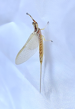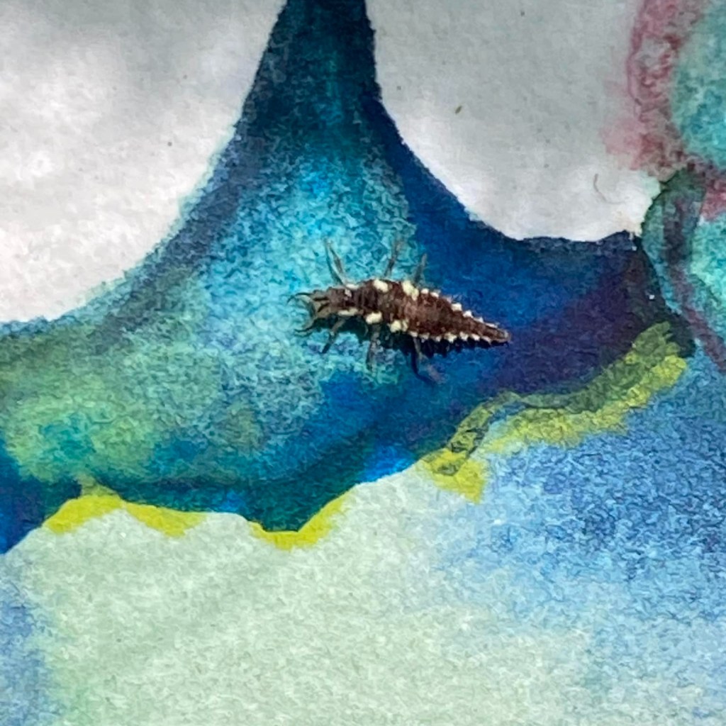 A beneficial, art-enthusiastic Red-lipped Green Lacewing (larva)