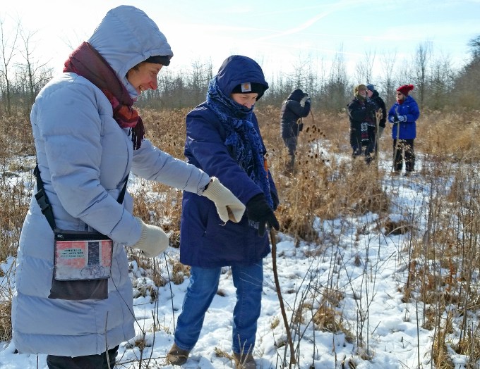 Sneezeweed, or helenium autumnale, is so called because its leaves were once dried and used to make snuff. The plants prefer moist soil and are at home along streams and wetlands. They grow from two to five feet tall and bear pale yellow to orange flowers with fan-shaped drooping rays. It is sometimes called Wingstem because of the gill-like “wings” running the length of the stems. Although attractive to pollinators, it is poisonous (in large amounts) to humans and livestock.