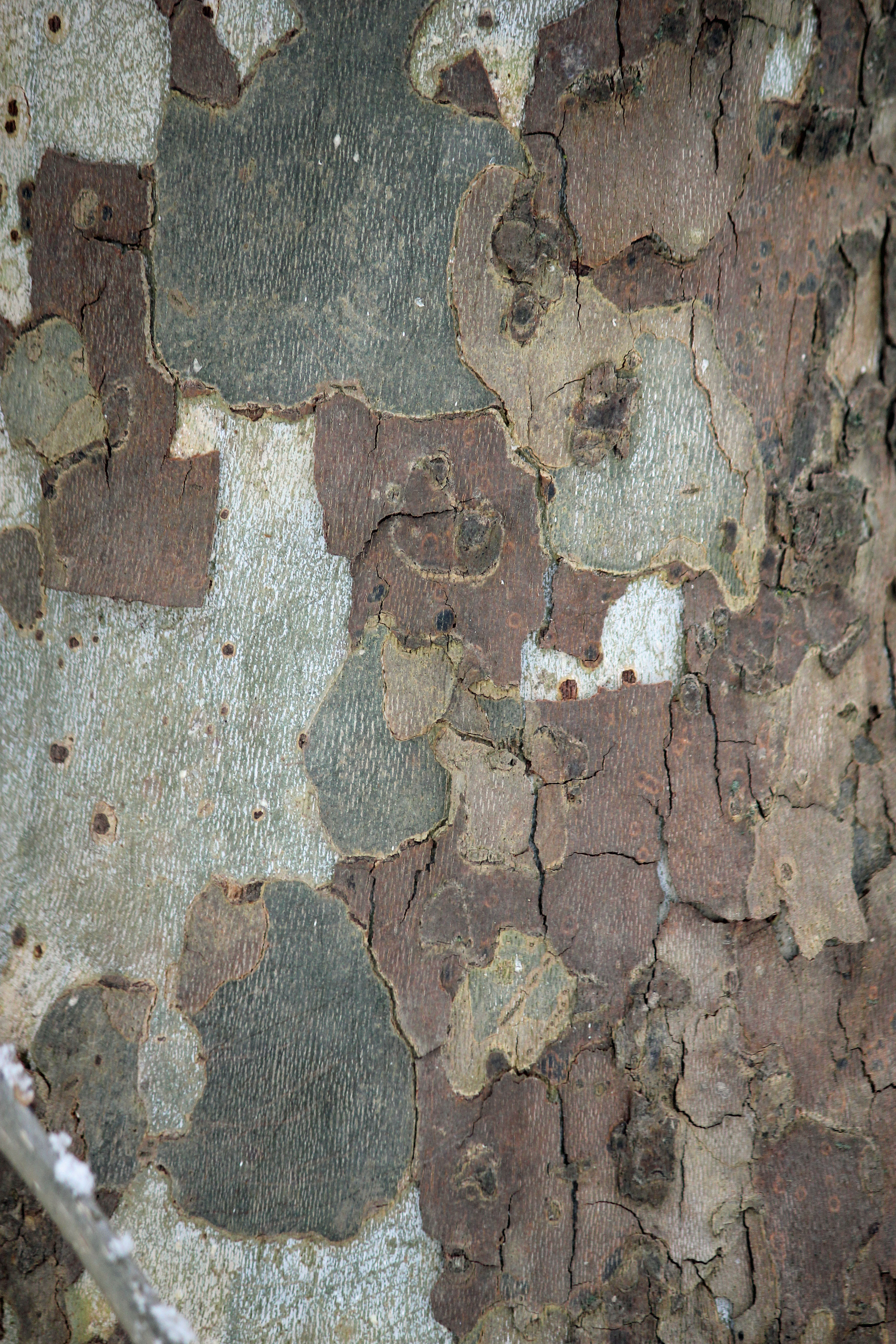 Anne, Lolly and Old Man Sycamoresycamore barkA little farther on and we came to a magnificent old gentleman of a tree; a huge and stately American sycamore that Anne calls by the name of Old Man Sycamore. There are any number of American sycamores (Platanas occidentalis) growing within the riparian areas of The Quarry, and we’re pleased to have them. The trunk and branches are of a mottled color, with reddish brown, pale gray, light green and olive shades of bark setting side by side in irregular patches. This is because the bark of the sycamore isn’t as rigid as the bark of other trees and sloughs off in patches, leaving a pattern created by different layers of bark. A hardwood, sycamores have been used for furniture, siding and even the creation of musical instruments. Because they’re so hardy, they do well in urban and suburban settings, and they do grow quite large; four foot in diameter is common and 70 to 100 feet tall isn’t unusual. Their canopies are welcome on hot summer days and even their stripped branches in winter offer a good deal of shelter from the elements.