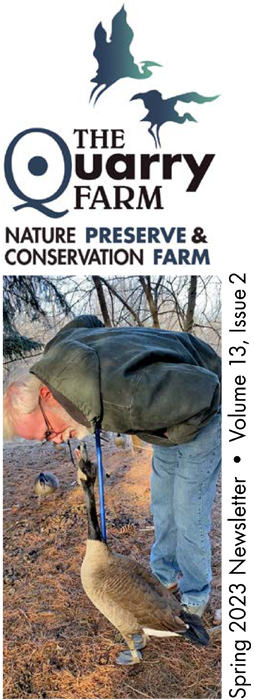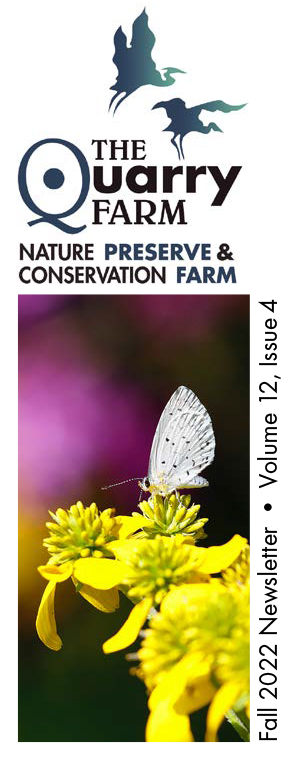 The space that is our developing prairie habitat used to be called simply “the back field.” A trail heading downhill from Red Fox Cabin, across Cranberry Run, around the quarry, up a hill, and through the woods leads to eleven acres that were tilled until 1985. The tractor path to the field skirted Cranberry Run for a stretch, where it narrowed to inaccessibility due to erosion. Farming the field had to be abandoned. A new direction for The Quarry Farm took shape: to establish a nature preserve with several distinct habitats, including a prairie in the back field.