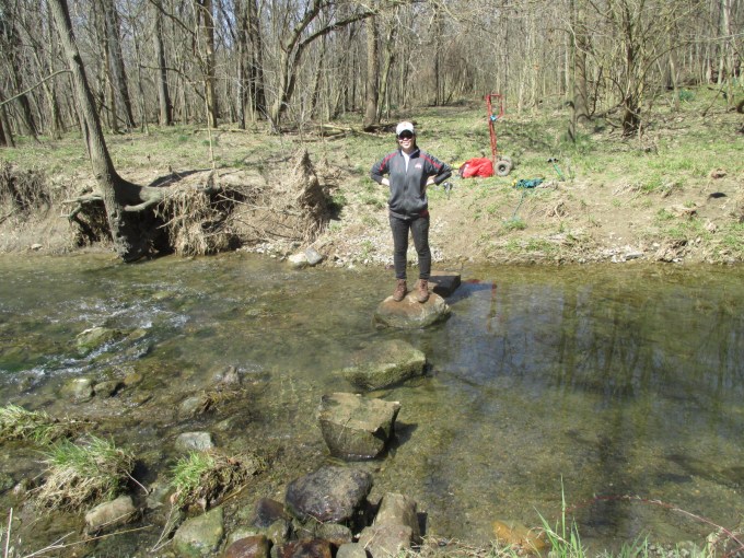“Stay Home” on these 50 acres doesn’t mean channel surfing. Well, maybe there’s a bit of that after sunsets or during thunderstorms like the one we are having right now. Since the first day of #stayathome, several more hands have joined Dave’s wage of war against bush honeysuckle and tree-downing grapevine on the nature preserve. He and his daughter Aili were back at it on sunny Monday, chainsawing and moving mountainous boulders to bridge the southern ford across Cranberry Run.