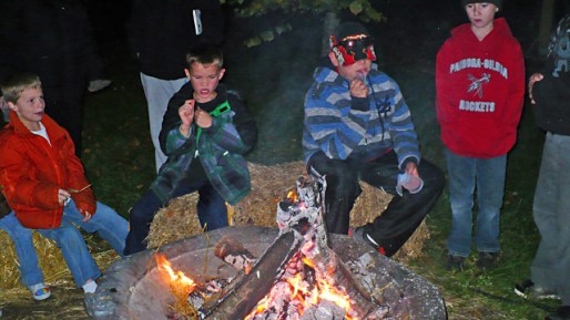 The water continued to rise in Cranberry Run while the Tri-Moraine Audubon Society walked the trails on Saturday. But by Monday, October 8, the creek had dropped back into its banks in time for 30 Pandora Cub Scouts, accompanied by their siblings and parents, to visit for a presentation and a tour. The “show” consisted of meet-and-greets with Buddy, aquatic macroinvertebrates, a juvenile opossum, a walk to the creek, cabin, and a cider-and-cookies finish around the fire bowl. What are some of the things that we hope the Scouts learned? That fish leeches won’t drain your arm of blood, that baby dragonflies eat lots of baby mosquitos, that opossums are nature’s garbage collectors, and that Northwest Ohio sunsets are the best. What did we learn? That you can cover a lot of ground in an hour. Beautiful night.
